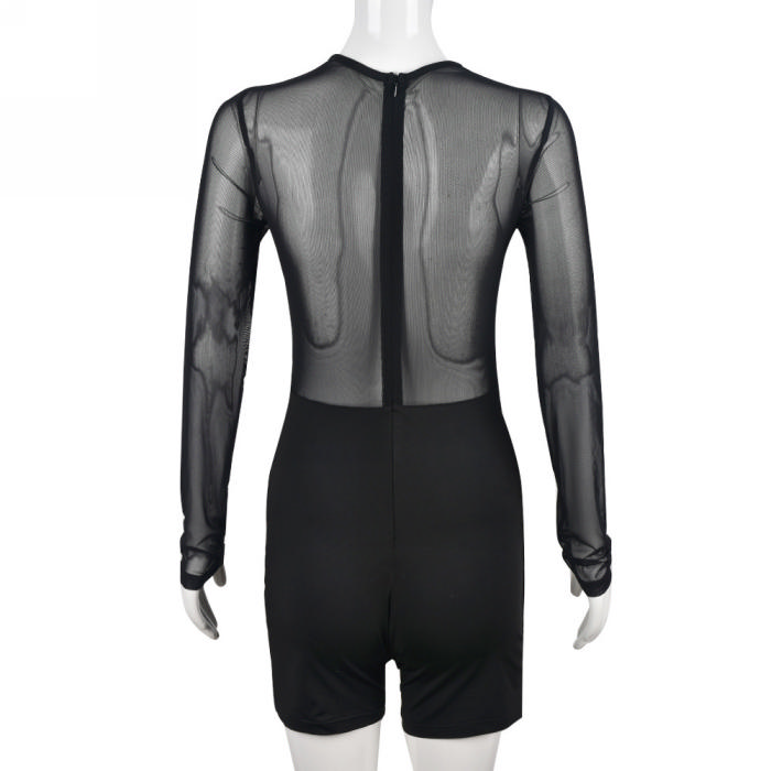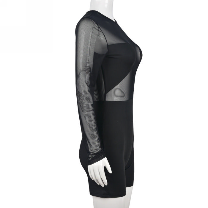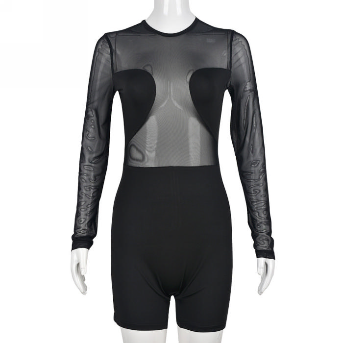 (Real Image)2022 Styles Women Fashion Summer TikTok&Instagram Styles Black Mesh Long Sleeve RomperSKU: #CF59317-1