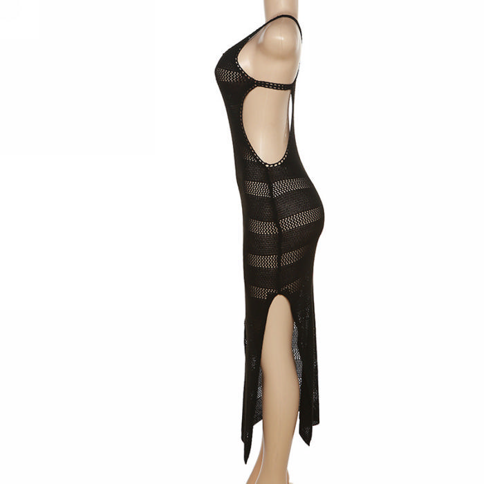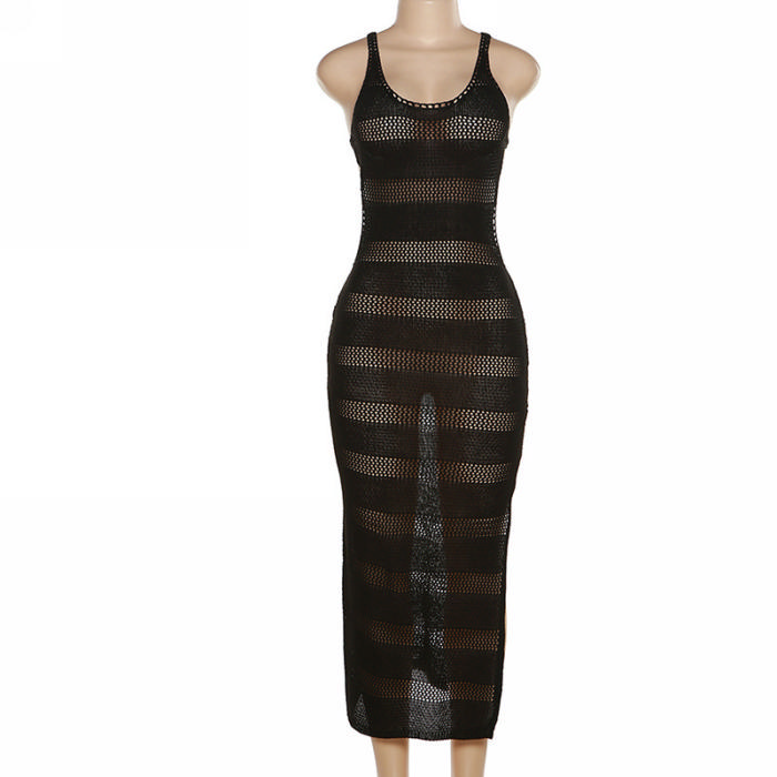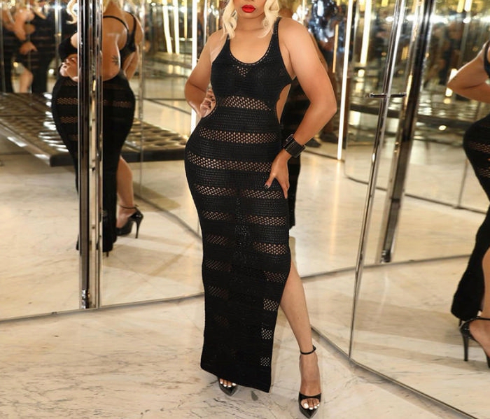 (Real Image)2022 Styles Women Fashion Summer TikTok&Instagram Styles Black Net Maxi DressSKU: #CF49923-1