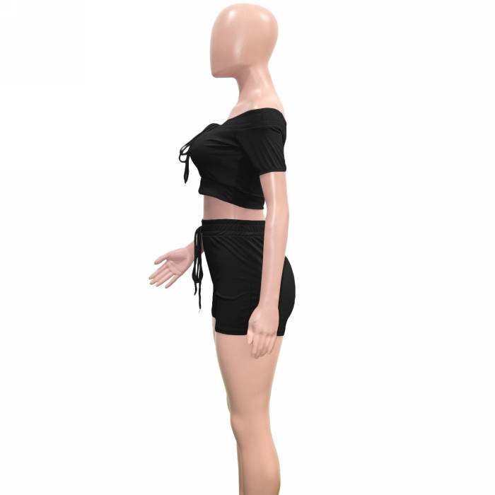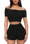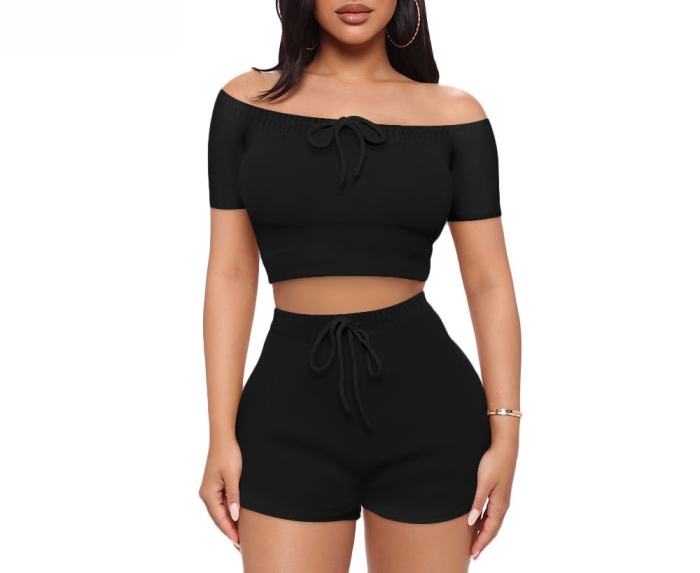 (Real Image)2022 Styles Women Fashion Summer TikTok&Instagram Styles Black Short Two Piece SuitSKU: #XF14900-1