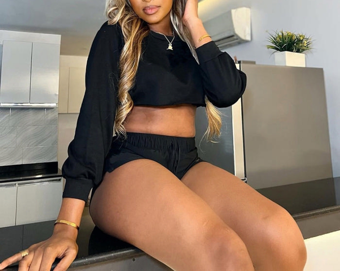 (Real Image)2022 Styles Women Fashion Summer TikTok&Instagram Styles Black Short Two Piece SuitSKU: #CF59326-1