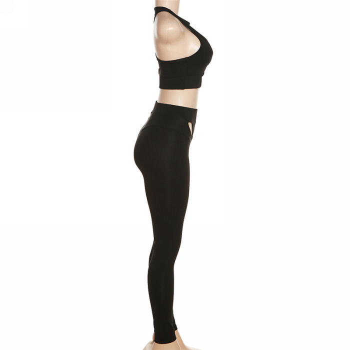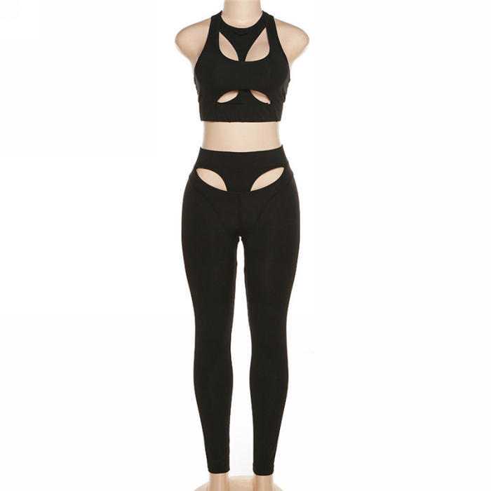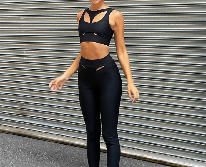 (Real Image)2022 Styles Women Fashion Summer TikTok&Instagram Styles Black Yoga Tracksuit SuitSKU: #CF77008-1