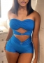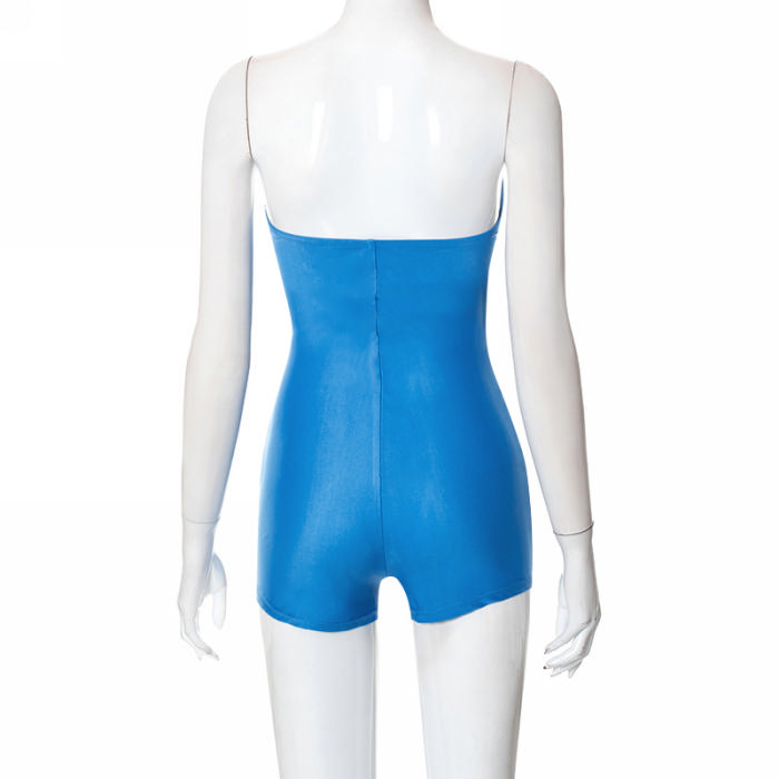 (Real Image)2022 Styles Women Fashion Summer TikTok&Instagram Styles Blue Bandage RomperSKU: #CF47299-1