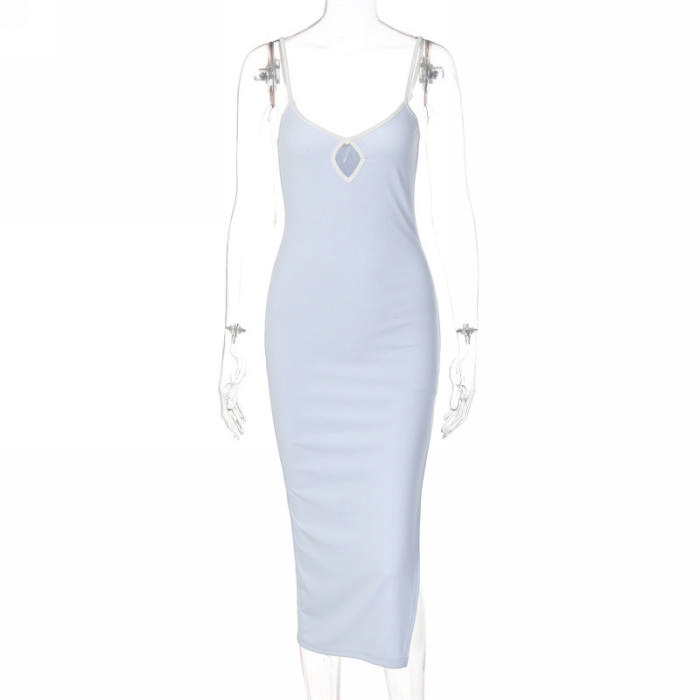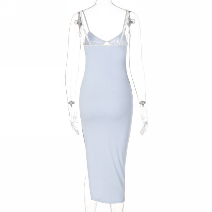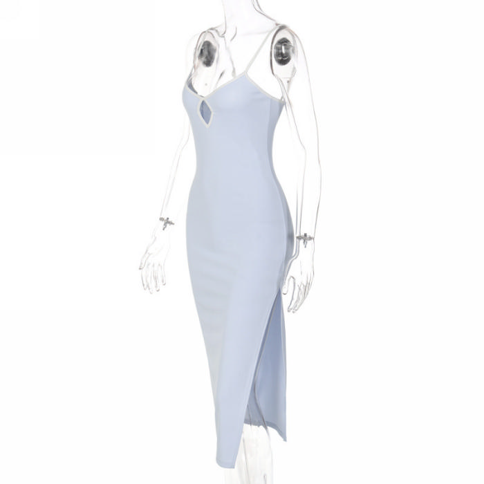 (Real Image)2022 Styles Women Fashion Summer TikTok&Instagram Styles Blue High Split Maxi DresssSKU: #CF22828-1