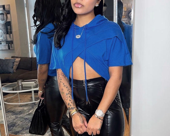(Real Image)2022 Styles Women Fashion Summer TikTok&Instagram Styles Blue Hoodie TopsSKU: #CF47308-1