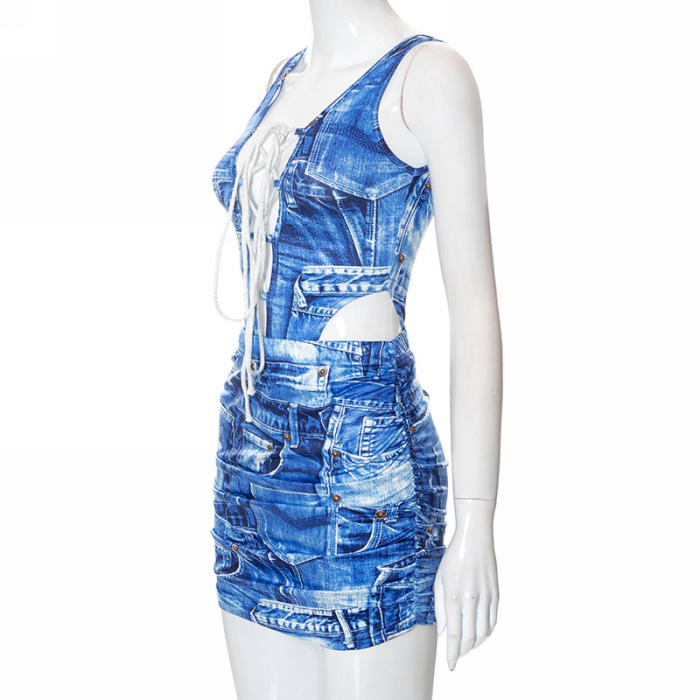 (Real Image)2022 Styles Women Fashion Summer TikTok&Instagram Styles Blue Lace Up Club DressSKU: #CF47163-1