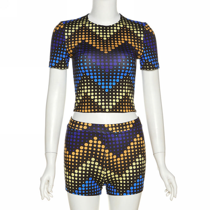 (Real Image)2022 Styles Women Fashion Summer TikTok&Instagram Styles Blue Short Two Piece SuitSKU: #CF49871-1