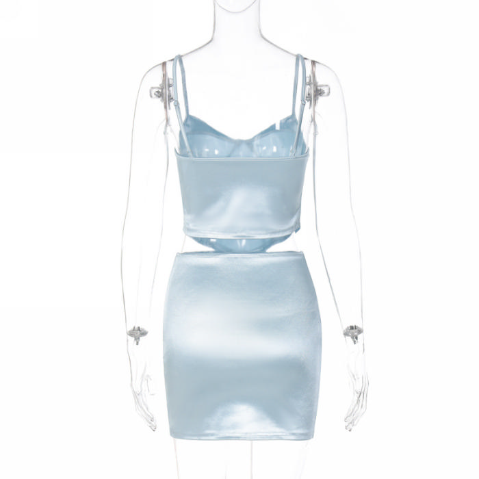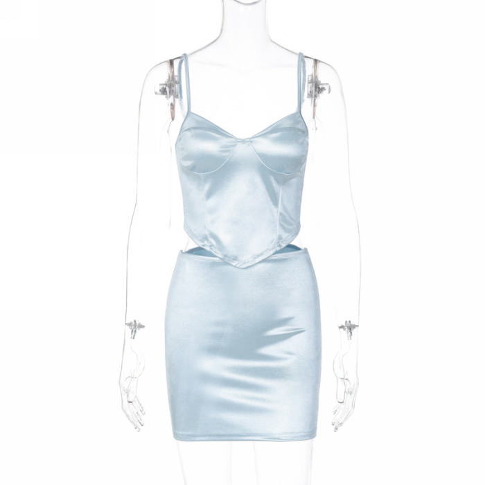 (Real Image)2022 Styles Women Fashion Summer TikTok&Instagram Styles Blue Two Piece DressSKU: #CF22784-1