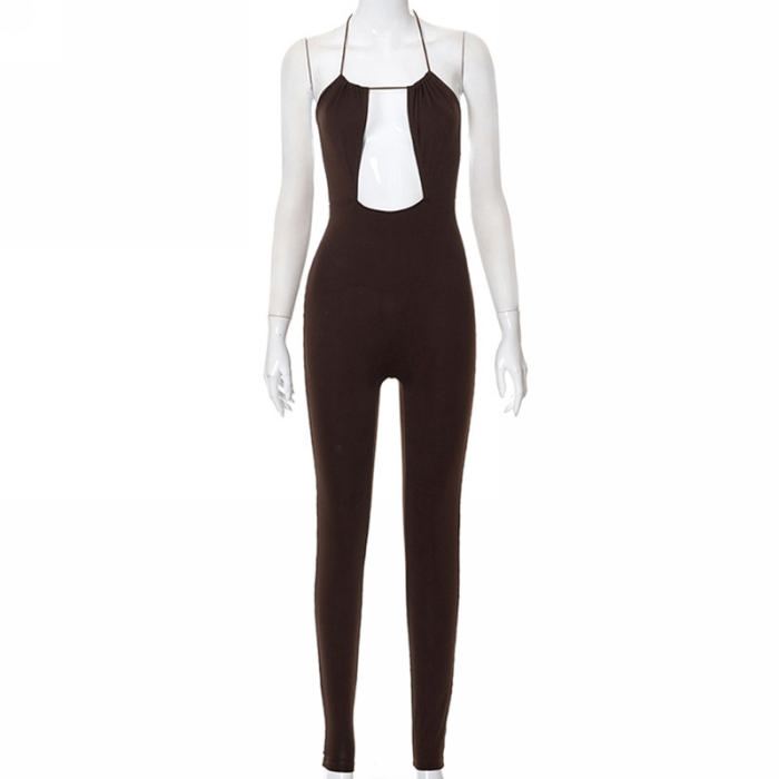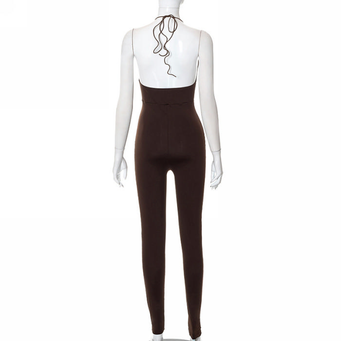 (Real Image)2022 Styles Women Fashion Summer TikTok&Instagram Styles Brown JumpsuitSKU: #CF47158-1