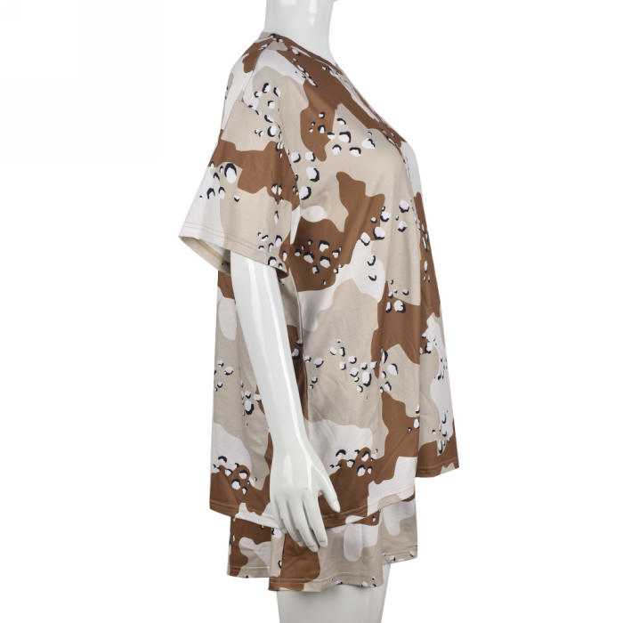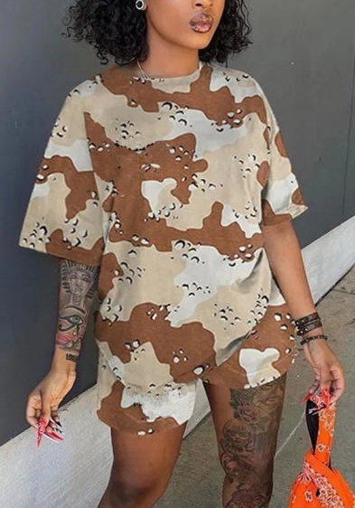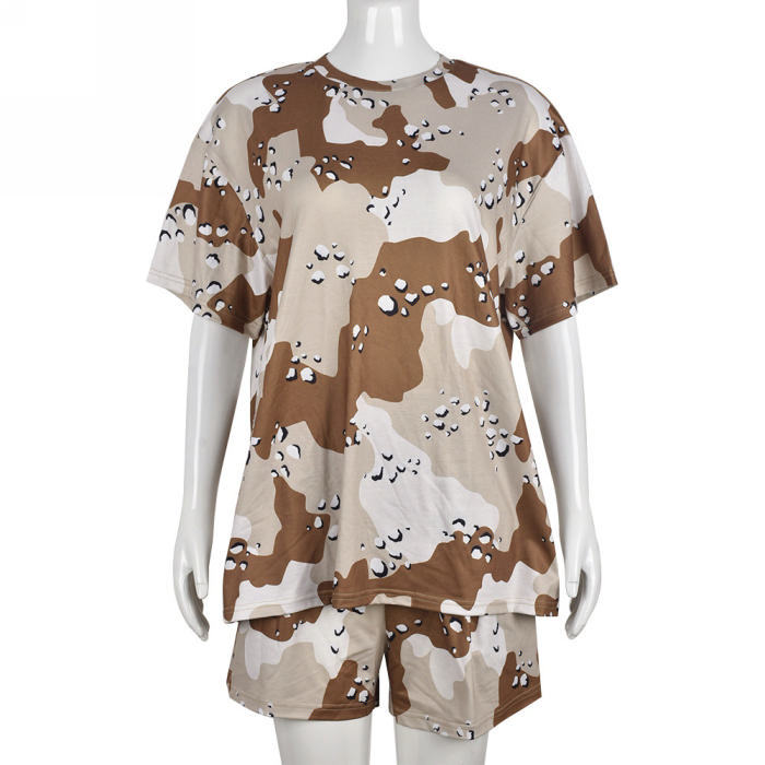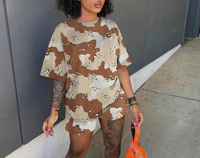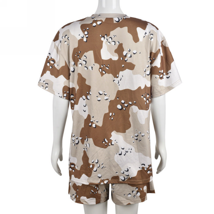 (Real Image)2022 Styles Women Fashion Summer TikTok&Instagram Styles Camouflage Short Two Piece SuitSKU: #CF59279-1
