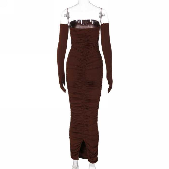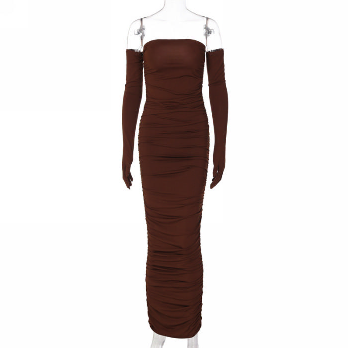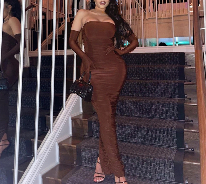 (Real Image)2022 Styles Women Fashion Summer TikTok&Instagram Styles Coffee Off Shoulder Maxi DressSKU: #CF22738-1