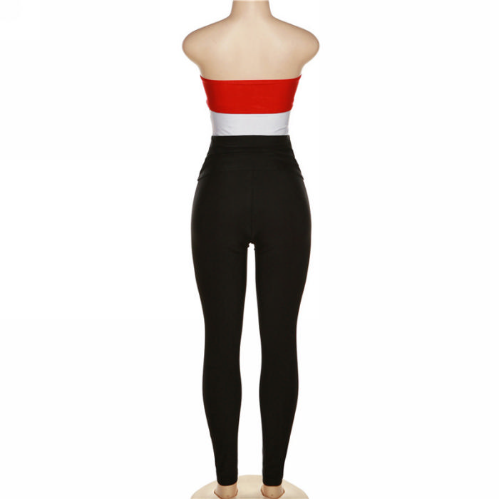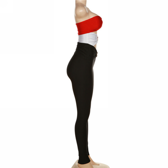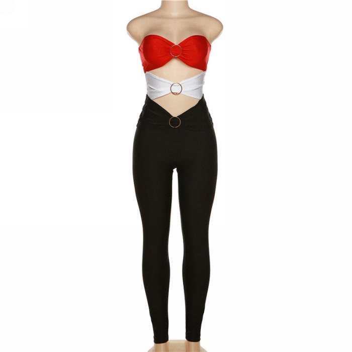 (Real Image)2022 Styles Women Fashion Summer TikTok&Instagram Styles Contrast Color Cut Out Red&White Two Piece SuitSKU: #CF49875-1