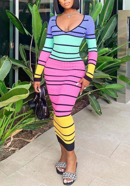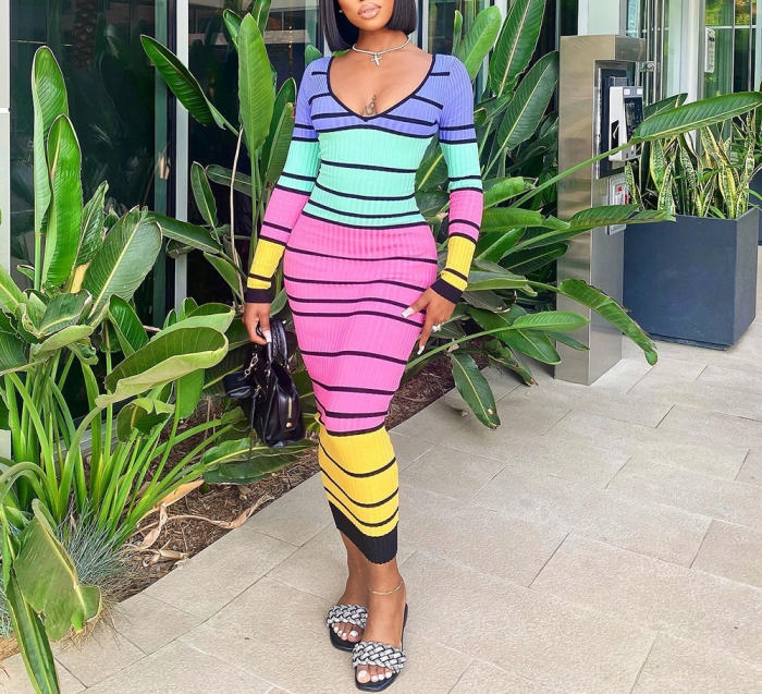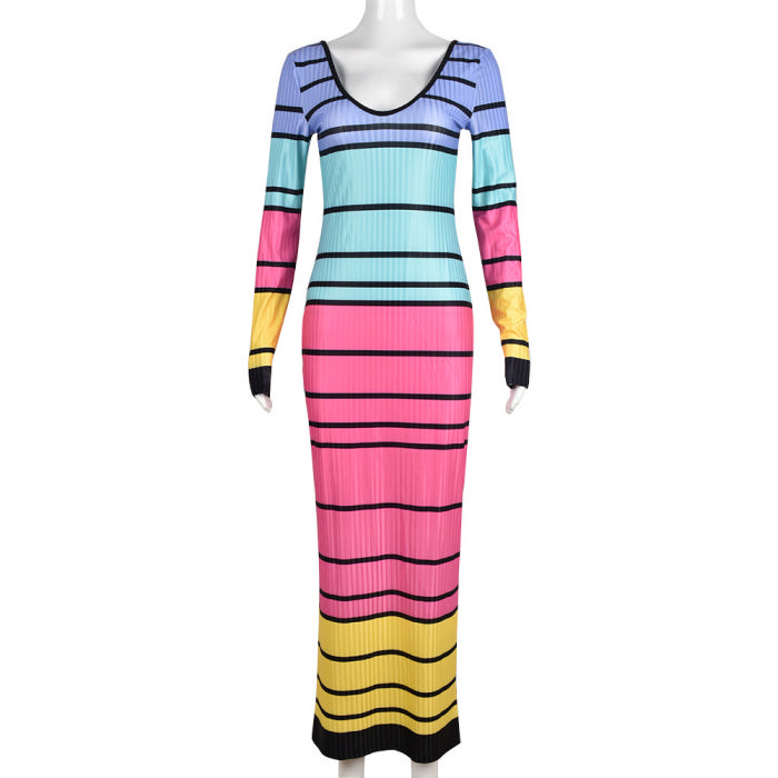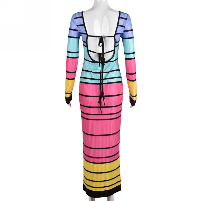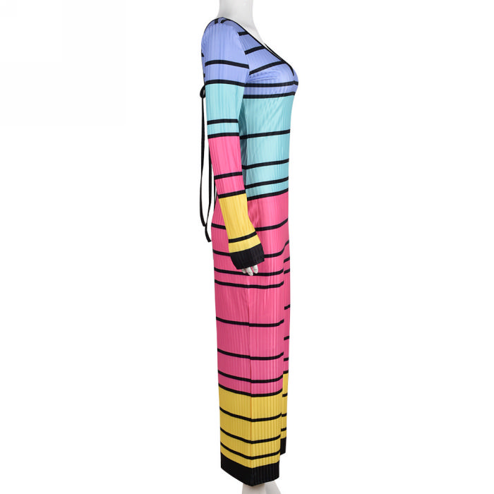 (Real Image)2022 Styles Women Fashion Summer TikTok&Instagram Styles Contrast Color Long Sleeve Maxi DressSKU: #CF59320-1