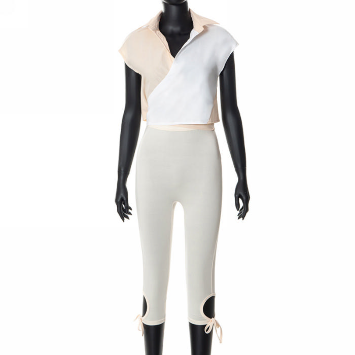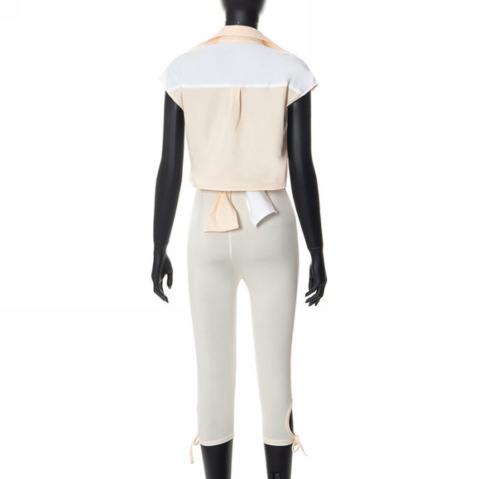 (Real Image)2022 Styles Women Fashion Summer TikTok&Instagram Styles Contrast Color Short Two Piece SuitSKU: #CF47304-1
