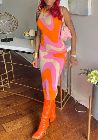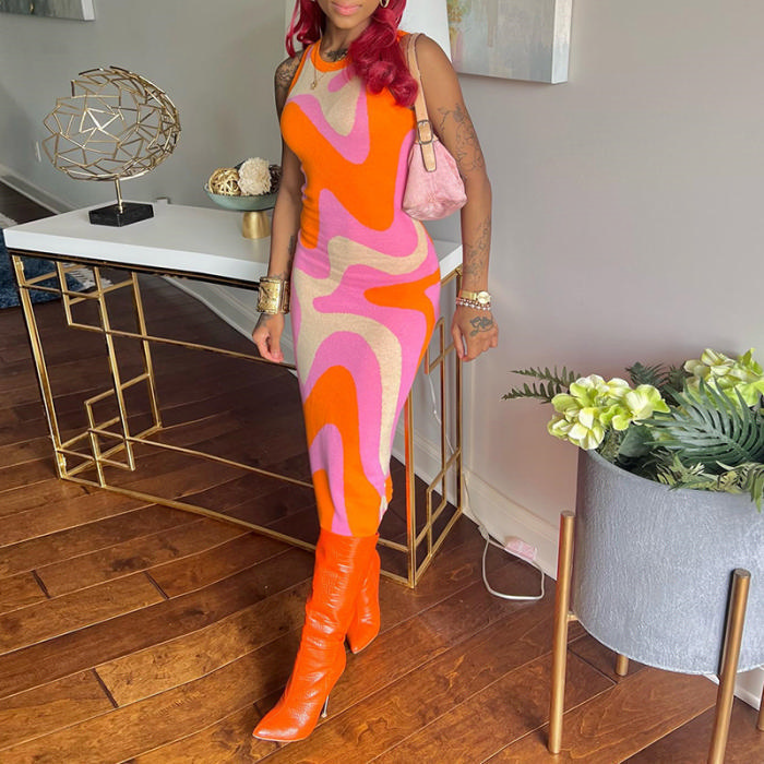 (Real Image)2022 Styles Women Fashion Summer TikTok&Instagram Styles Contrast Color Sleeveless Maxi DressSKU: #CF48844-1
