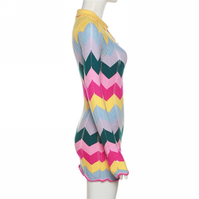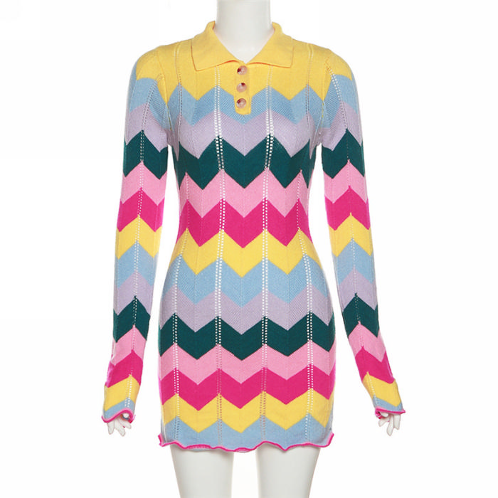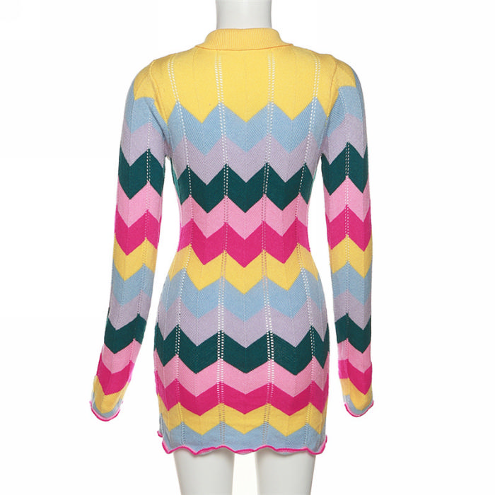 (Real Image)2022 Styles Women Fashion Summer TikTok&Instagram Styles Contrast Color Sweater Long Sleeve Mini DressSKU: #CF48790-1