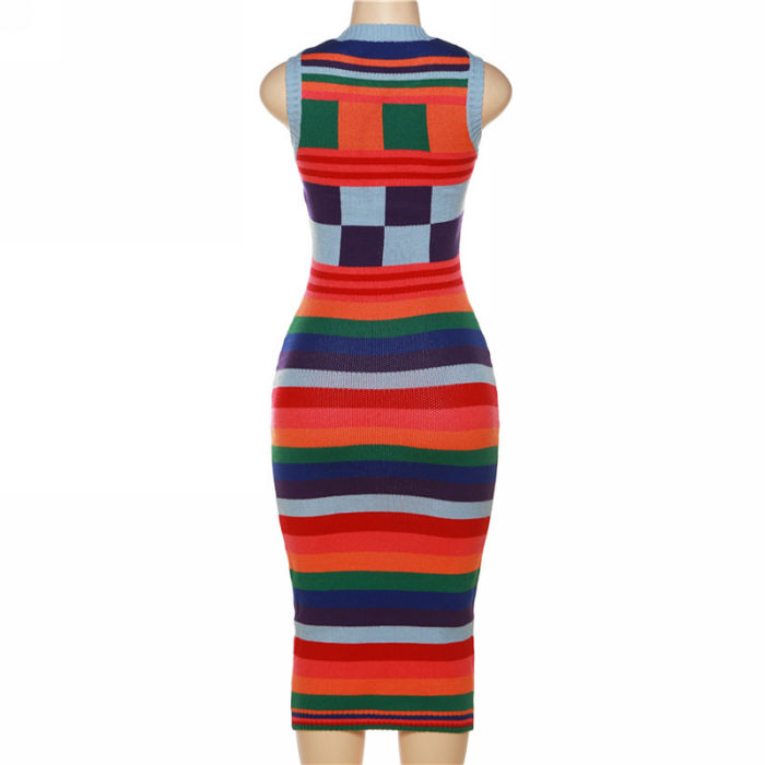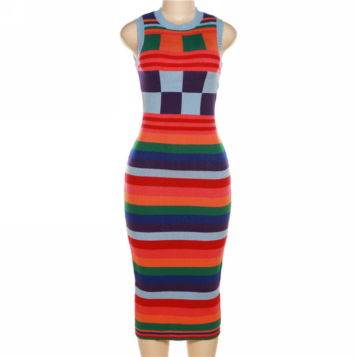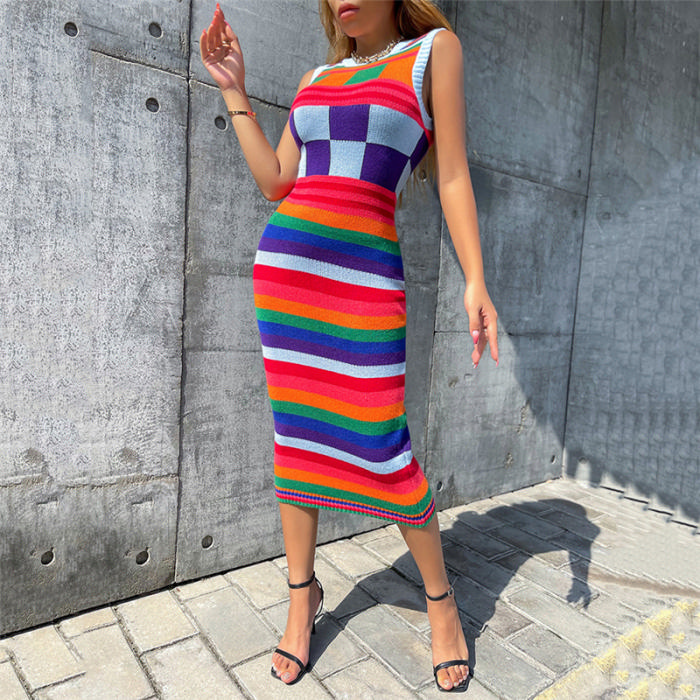 (Real Image)2022 Styles Women Fashion Summer TikTok&Instagram Styles Contrast Color Sweater Midi DressSKU: #CF48801-1