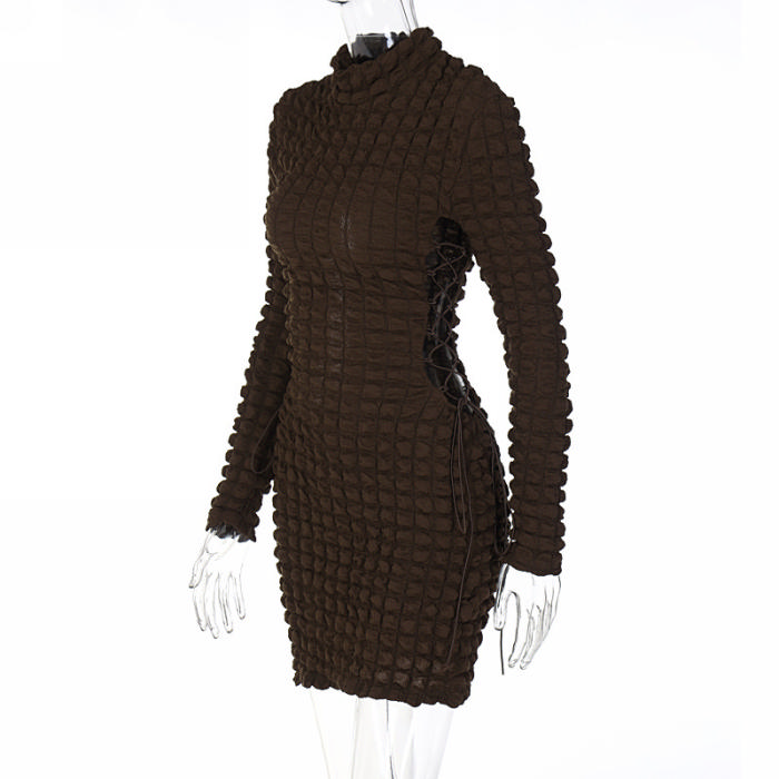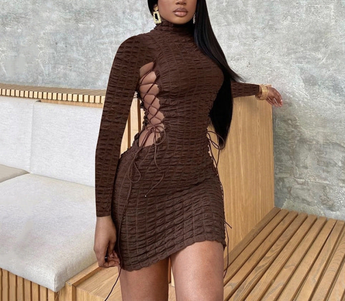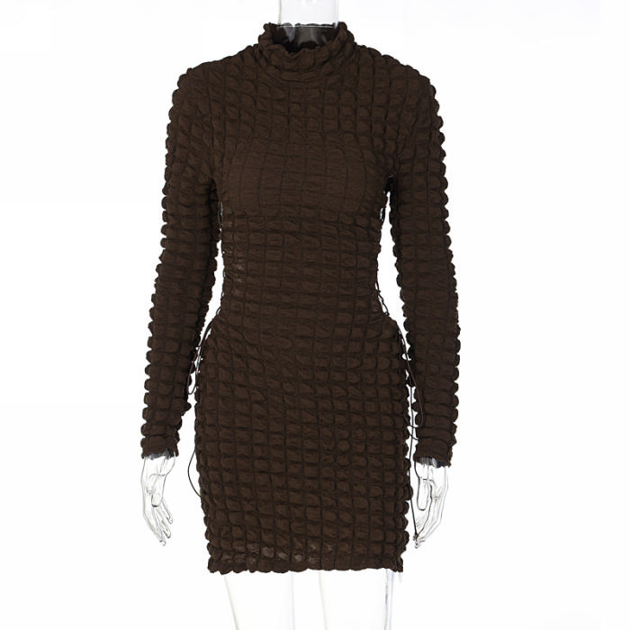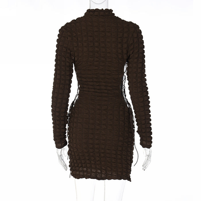 (Real Image)2022 Styles Women Fashion Summer TikTok&Instagram Styles Cotton Double Lace Up Long Sleeve Mini DressSKU: #CF22734-2