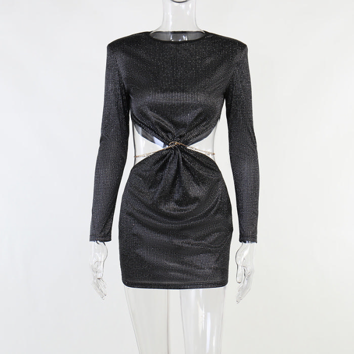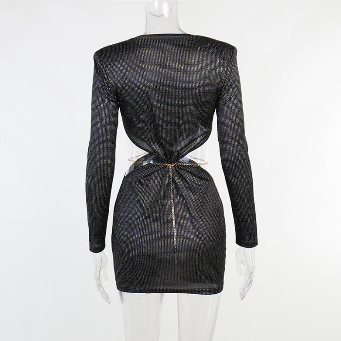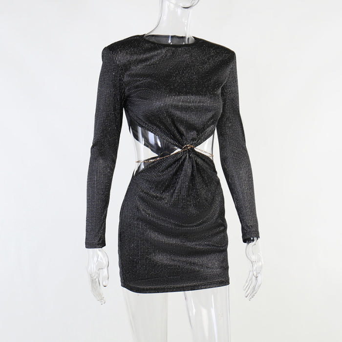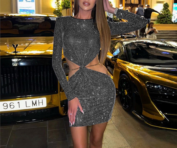 (Real Image)2022 Styles Women Fashion Summer TikTok&Instagram Styles Cut Out Long Sleeve Mini DressSKU: #XF92593-1