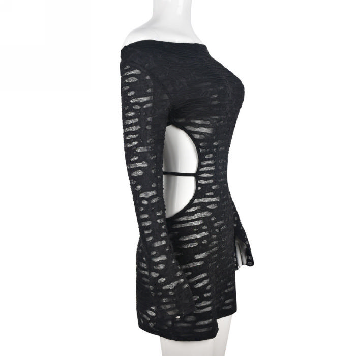 (Real Image)2022 Styles Women Fashion Summer TikTok&Instagram Styles Cut Out Long Sleeve Mini DressSKU: #CF59328-1