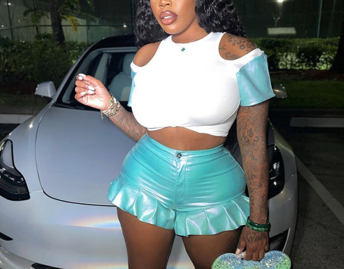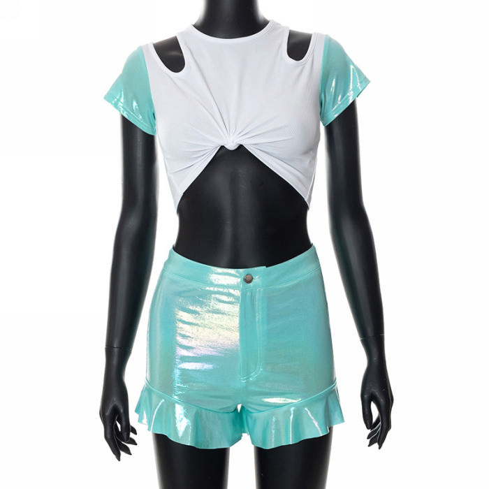 (Real Image)2022 Styles Women Fashion Summer TikTok&Instagram Styles Cut Out Short Two Piece SuitSKU: #CF47185-1