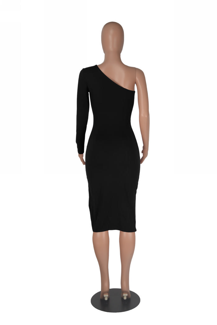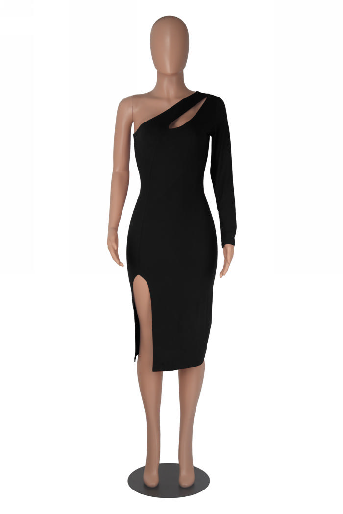 (Real Image)2022 Styles Women Fashion Summer TikTok&Instagram Styles Cut Out Single Shoulder Midi DressSKU: #OEM5770-1