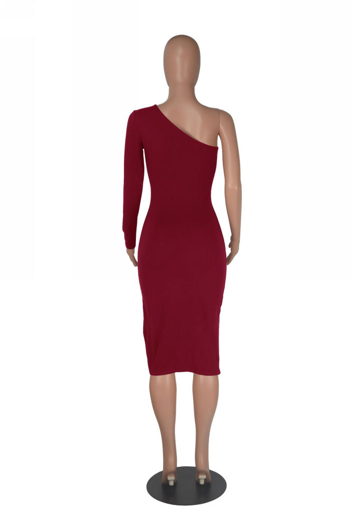 (Real Image)2022 Styles Women Fashion Summer TikTok&Instagram Styles Cut Out Single Shoulder Midi DressSKU: #OEM5770-3