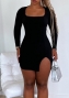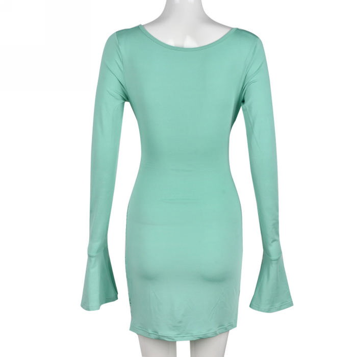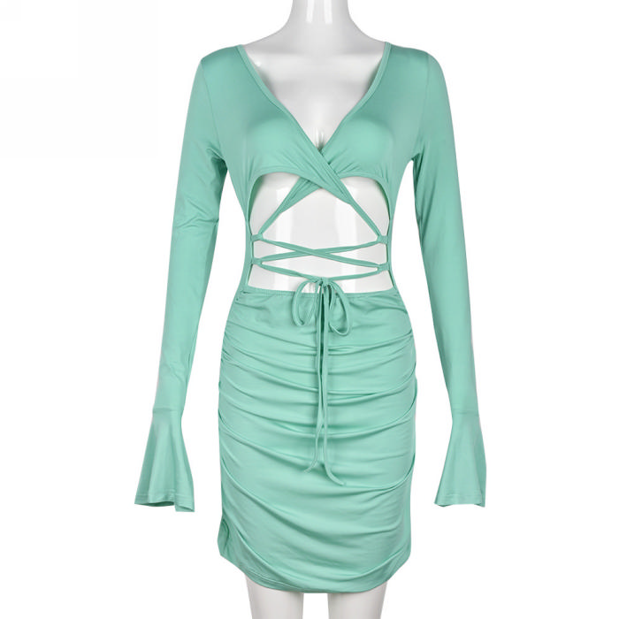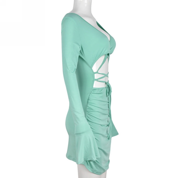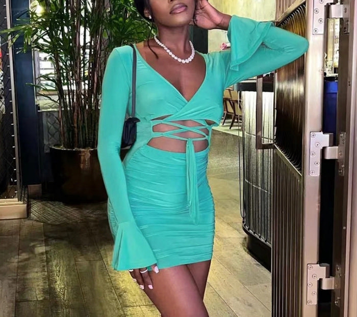 (Real Image)2022 Styles Women Fashion Summer TikTok&Instagram Styles Flare Long Sleeve Cut Out Mini DressSKU: #CF59309-1