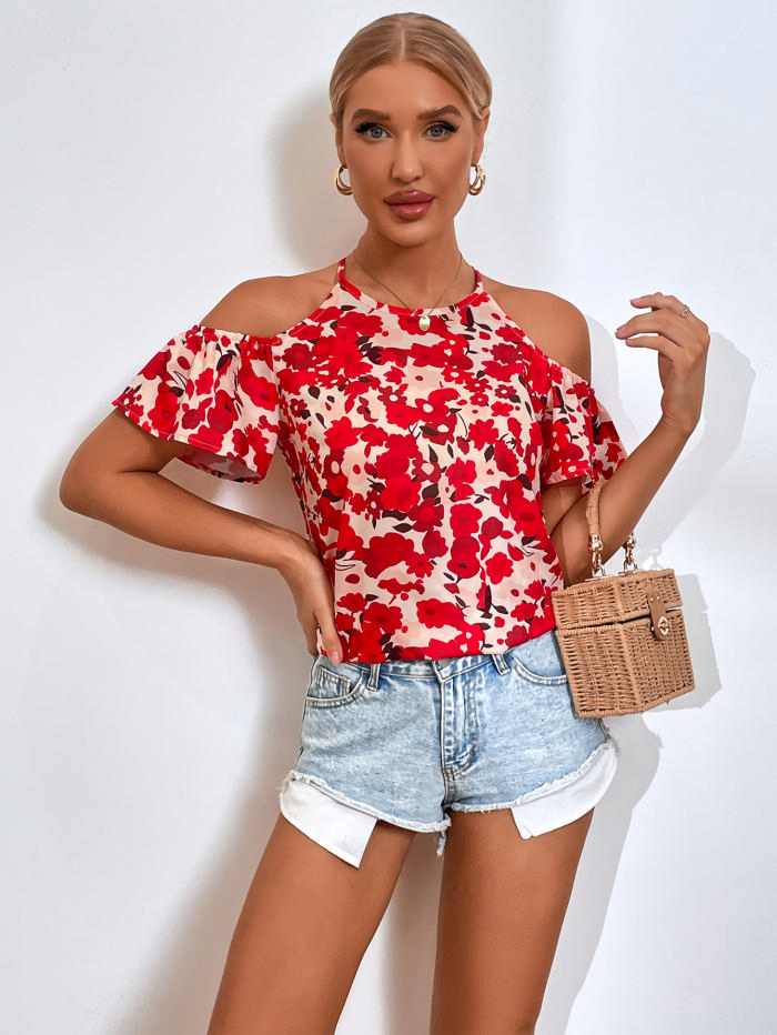 (Real Image)2022 Styles Women Fashion Summer TikTok&Instagram Styles Floral Cold Shoulder ShirtsSKU: #CF65050-1