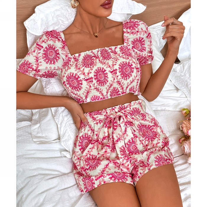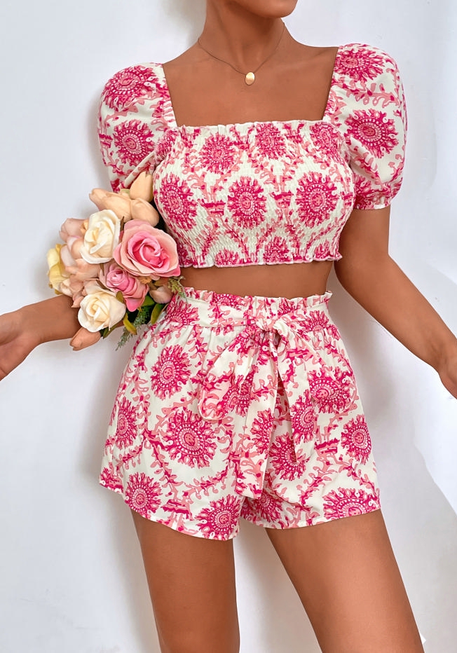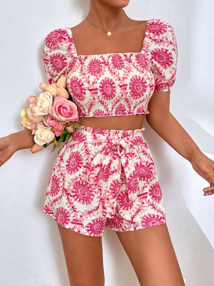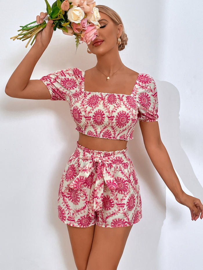 (Real Image)2022 Styles Women Fashion Summer TikTok&Instagram Styles Floral Short Two Piece SuitSKU: #CF65064-1