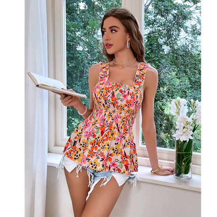 (Real Image)2022 Styles Women Fashion Summer TikTok&Instagram Styles Floral Strap ShirtsSKU: #CF65051-1