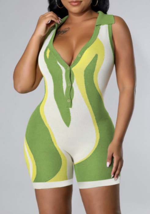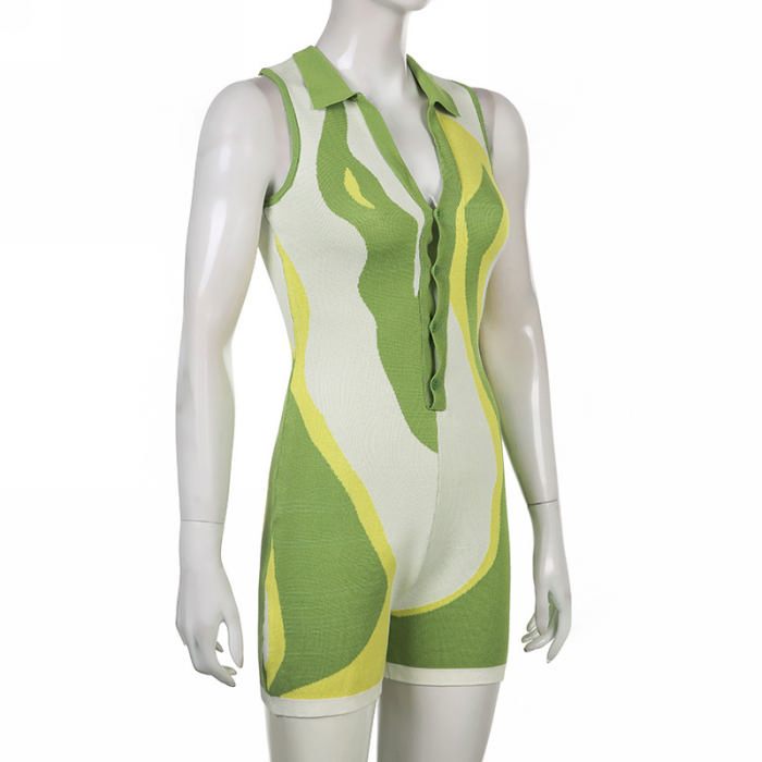 (Real Image)2022 Styles Women Fashion Summer TikTok&Instagram Styles Front Button Contrast Color RomperSKU: #RO047-1