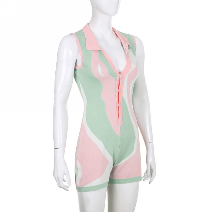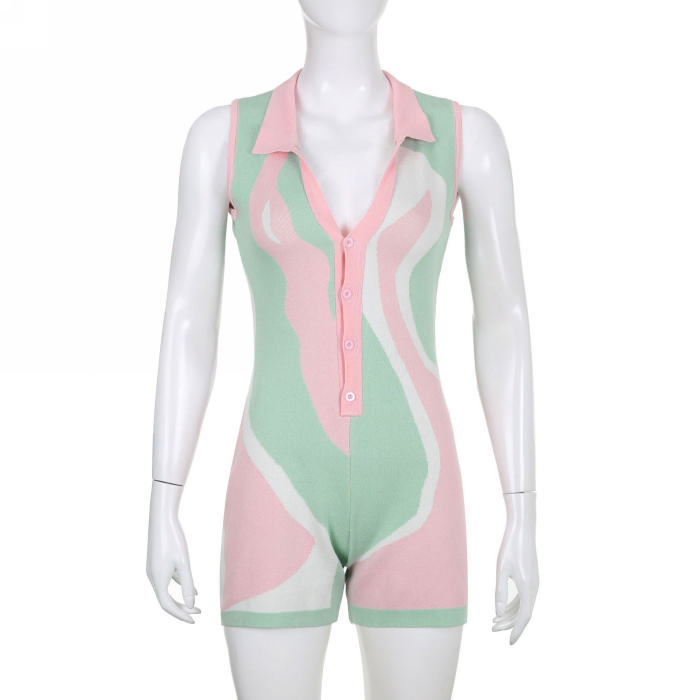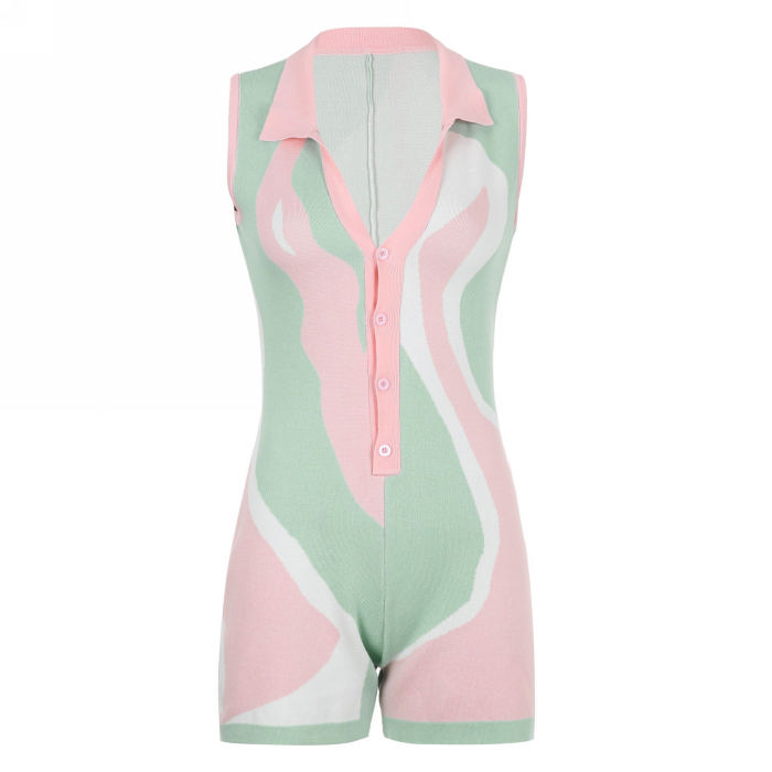 (Real Image)2022 Styles Women Fashion Summer TikTok&Instagram Styles Front Button Contrast Color RomperSKU: #RO047-4