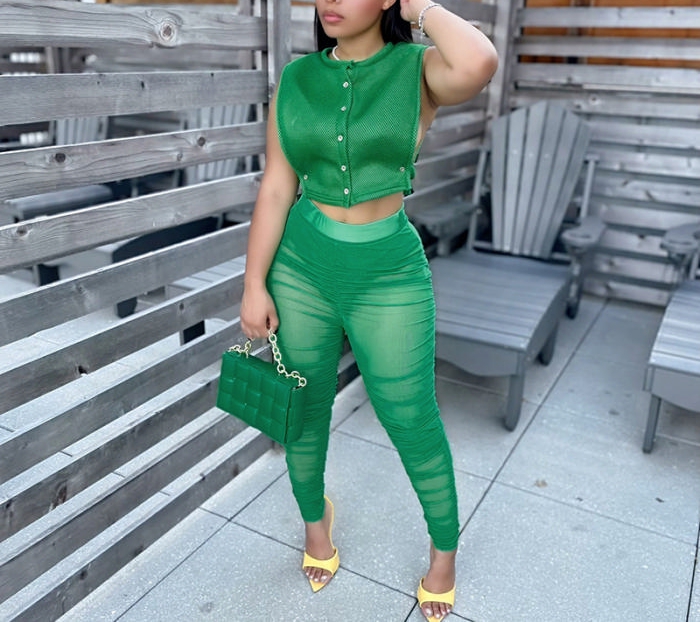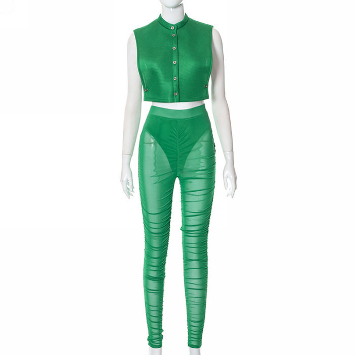 (Real Image)2022 Styles Women Fashion Summer TikTok&Instagram Styles Front Button Two Piece SuitSKU: #CF47160-1