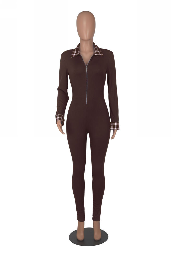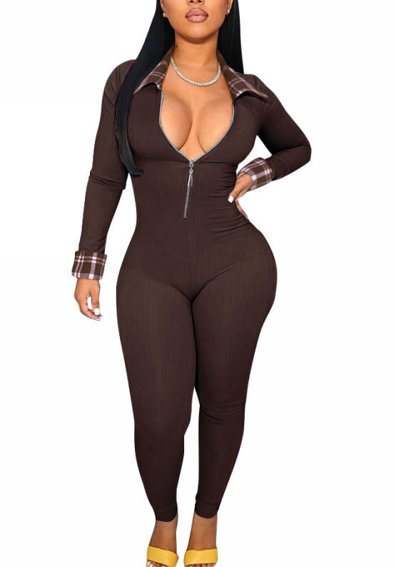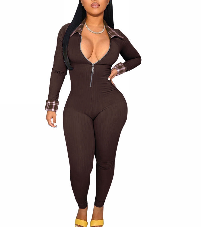 (Real Image)2022 Styles Women Fashion Summer TikTok&Instagram Styles Front Zipper Long Sleeve JumpsuitSKU: #OEM5757-3