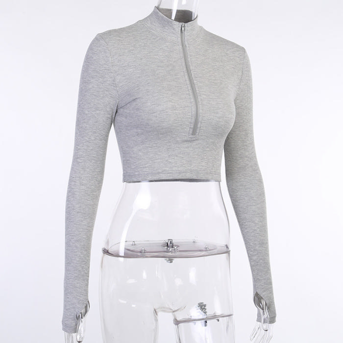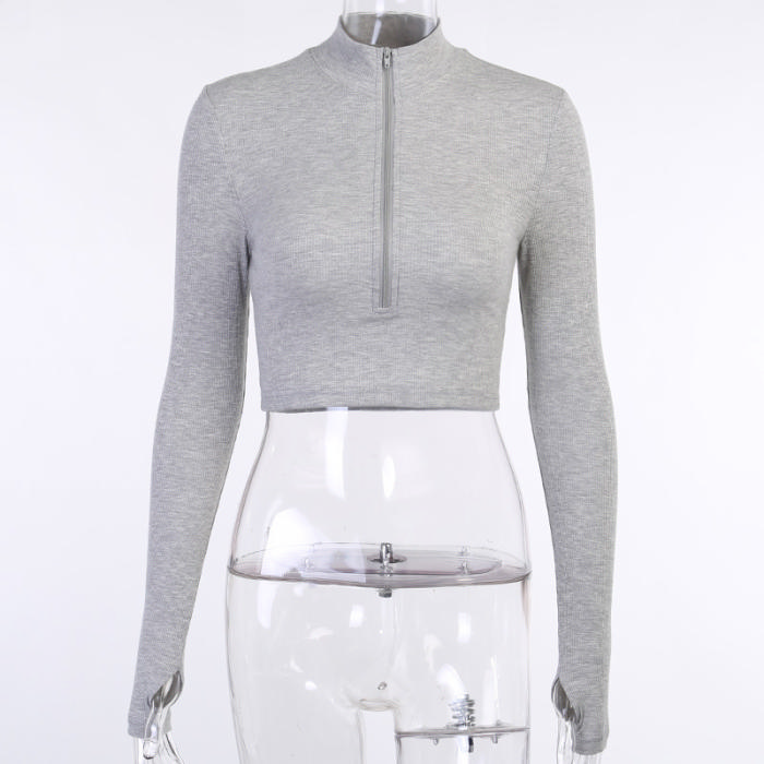 (Real Image)2022 Styles Women Fashion Summer TikTok&Instagram Styles Front Zipper Long Sleeve Tank TopsSKU: #XF92613-1