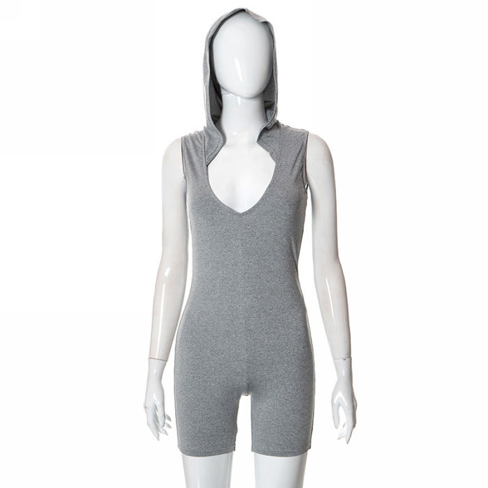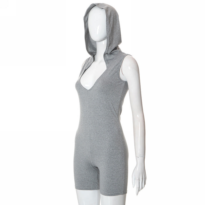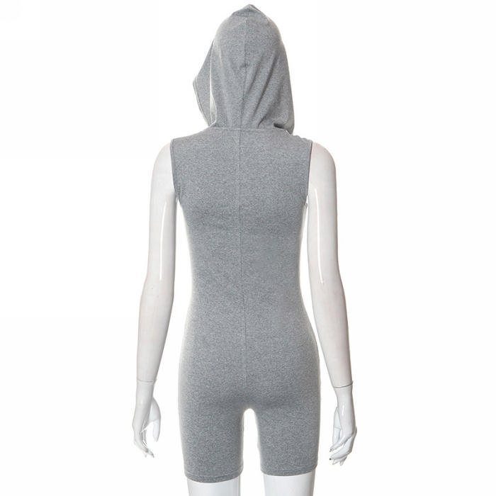 (Real Image)2022 Styles Women Fashion Summer TikTok&Instagram Styles Gray Hoodie RomperSKU: #CF47267-1