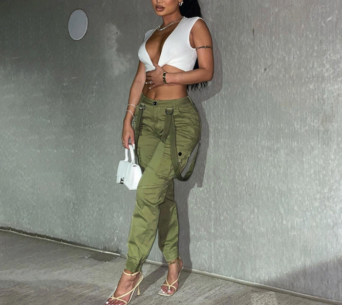(Real Image)2022 Styles Women Fashion Summer TikTok&Instagram Styles Green Long PantsSKU: #CF47128-1