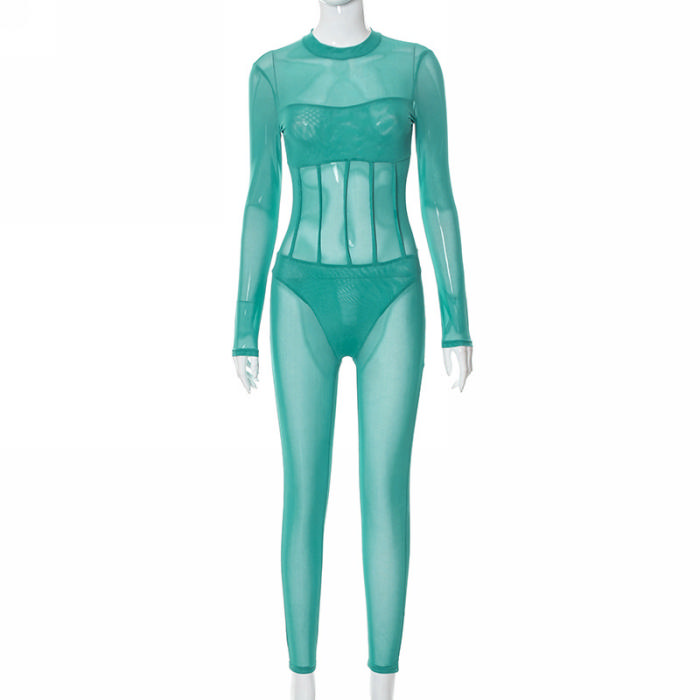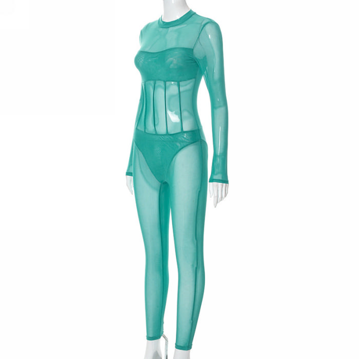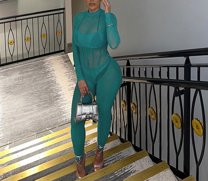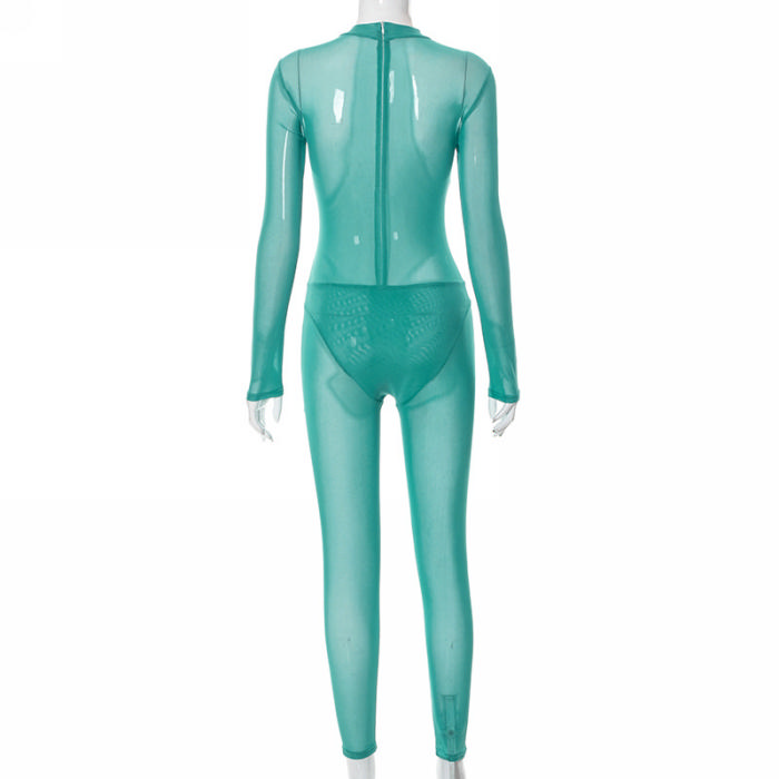 (Real Image)2022 Styles Women Fashion Summer TikTok&Instagram Styles Green Mesh JumpsuitSKU: #CF47170-1