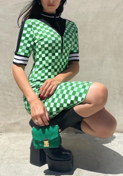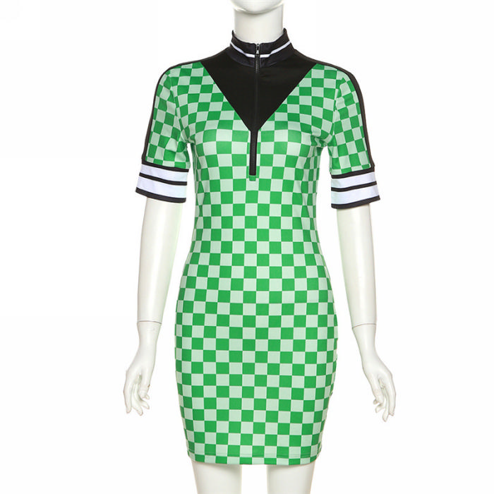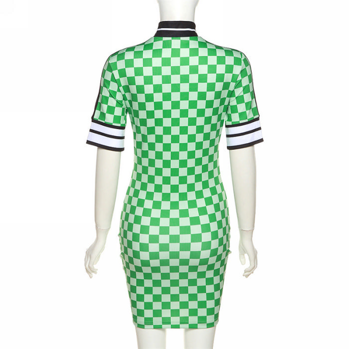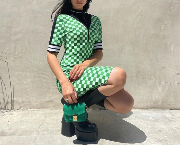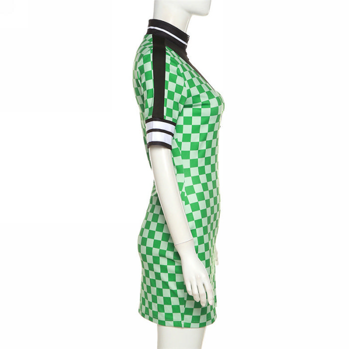 (Real Image)2022 Styles Women Fashion Summer TikTok&Instagram Styles Green Plaid Short Sleeve Mini DressSKU: #CF77068-1