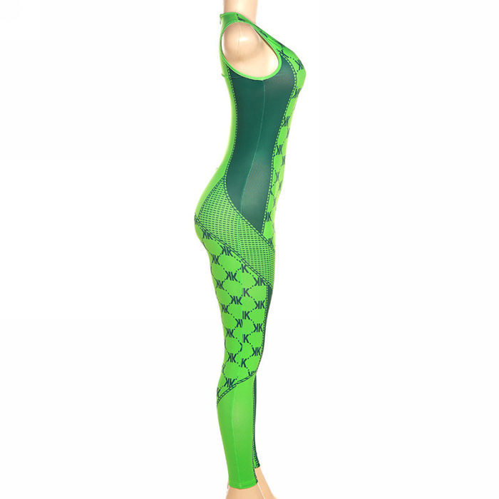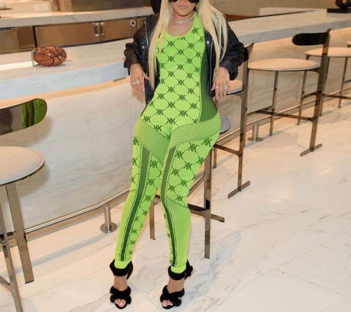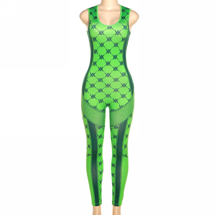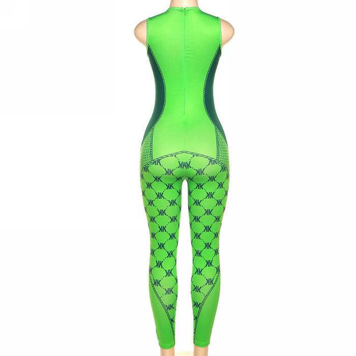 (Real Image)2022 Styles Women Fashion Summer TikTok&Instagram Styles Green Print JumpsuitSKU: #CF49928-1