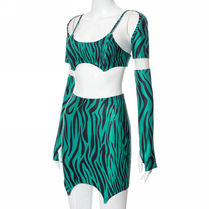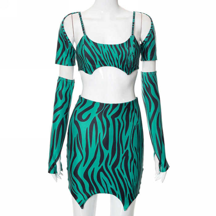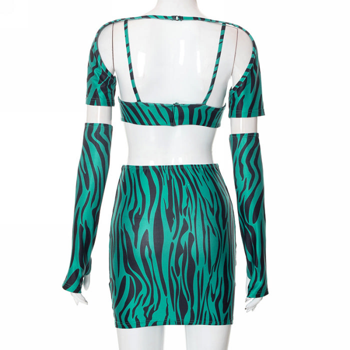 (Real Image)2022 Styles Women Fashion Summer TikTok&Instagram Styles Green Print Two Piece DressSKU: #CF76025-1