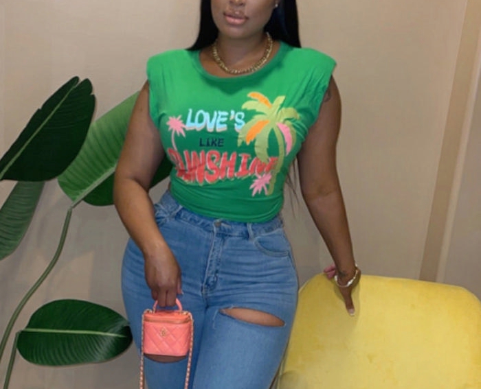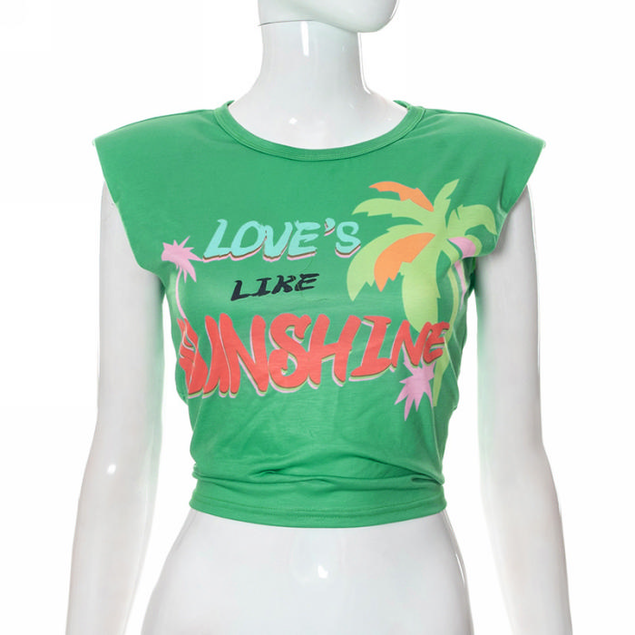 (Real Image)2022 Styles Women Fashion Summer TikTok&Instagram Styles Green Sleeveless TopsSKU: #CF47138-1