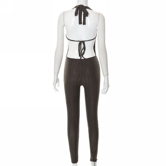(Real Image)2022 Styles Women Fashion Summer TikTok&Instagram Styles Halter Backless JumpsuitSKU: #CF47327-1