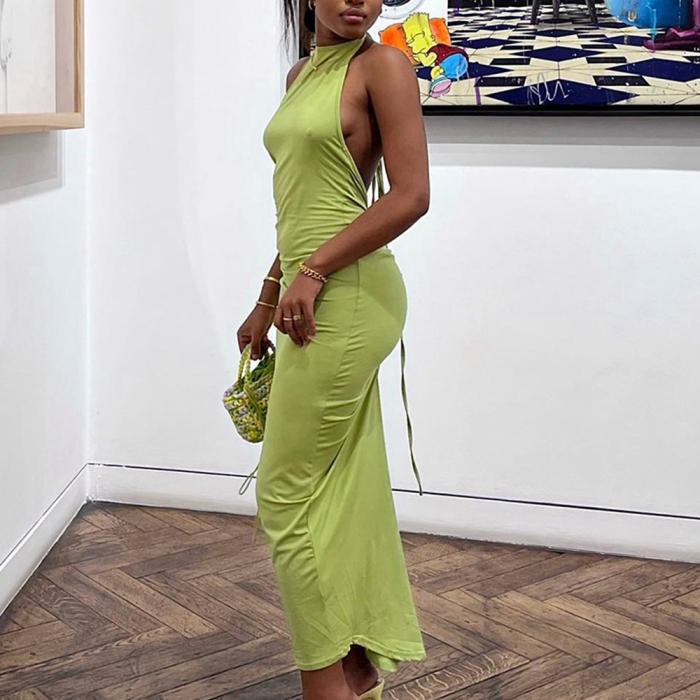 (Real Image)2022 Styles Women Fashion Summer TikTok&Instagram Styles Halter Backless Maxi DressSKU: #CF59302-1