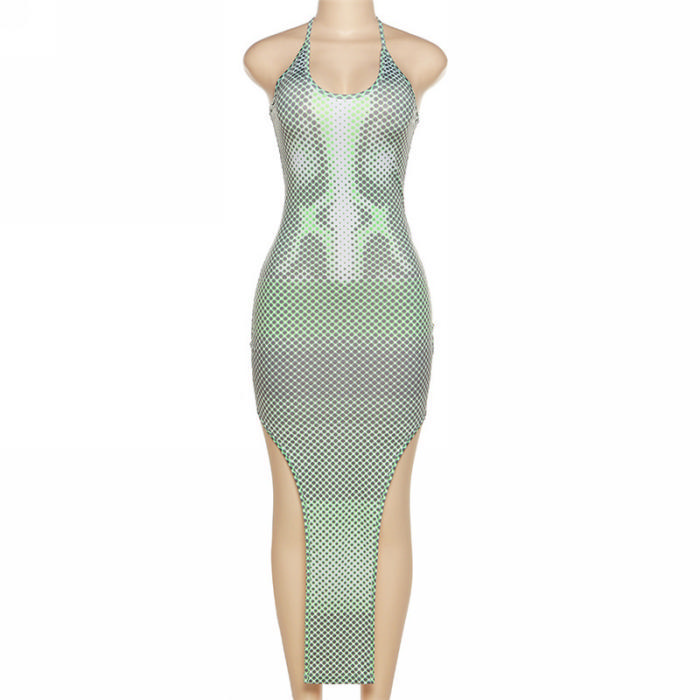 (Real Image)2022 Styles Women Fashion Summer TikTok&Instagram Styles Halter Print Maxi DressSKU: #CF48845-1