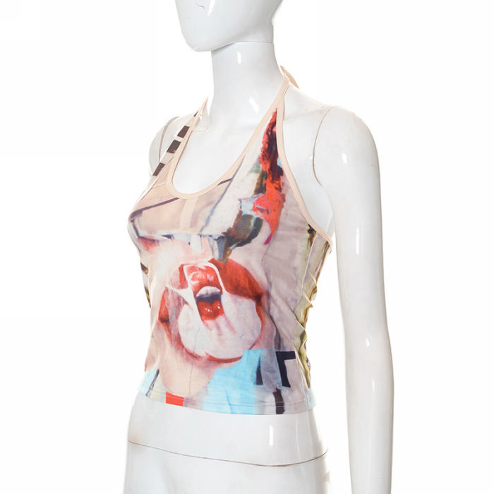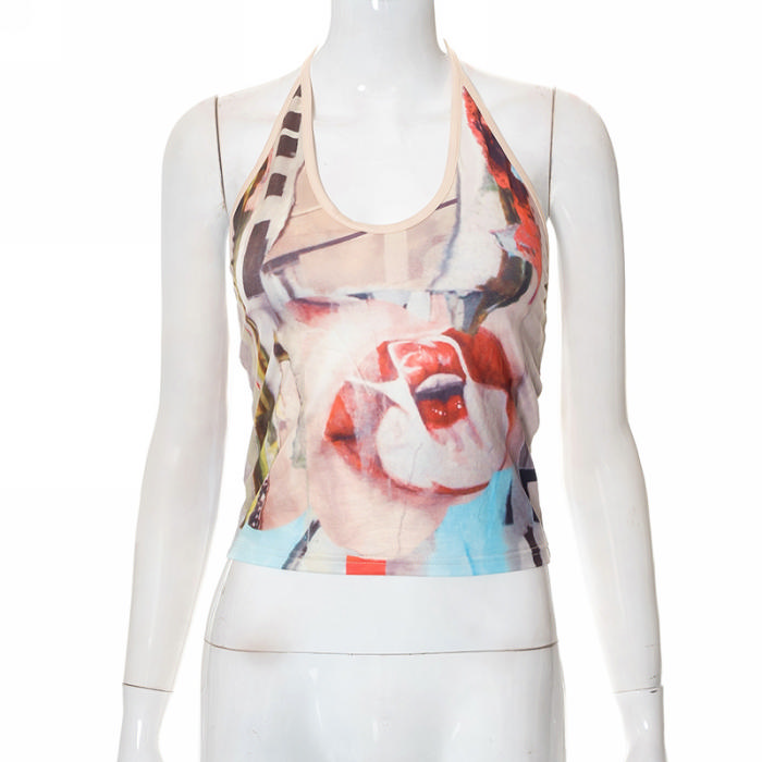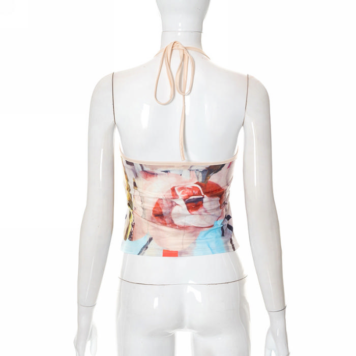 (Real Image)2022 Styles Women Fashion Summer TikTok&Instagram Styles Halter Print TeeSKU: #CF76059-1