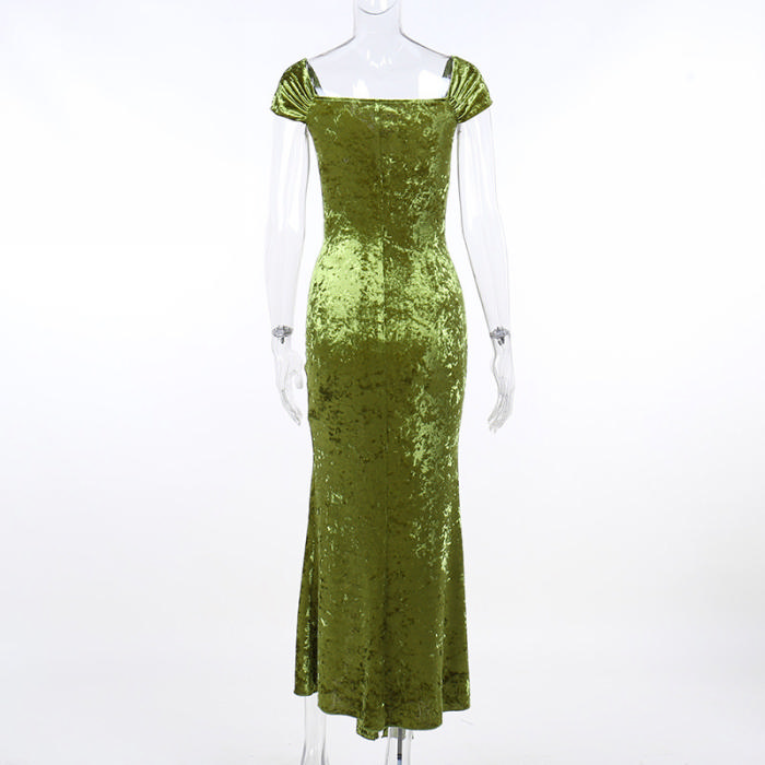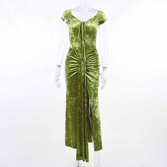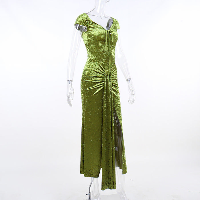 (Real Image)2022 Styles Women Fashion Summer TikTok&Instagram Styles High Split Velvet Maxi DressSKU: #XF92636-1
