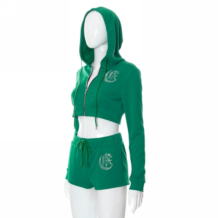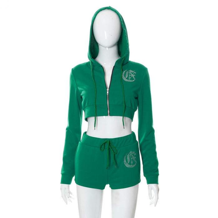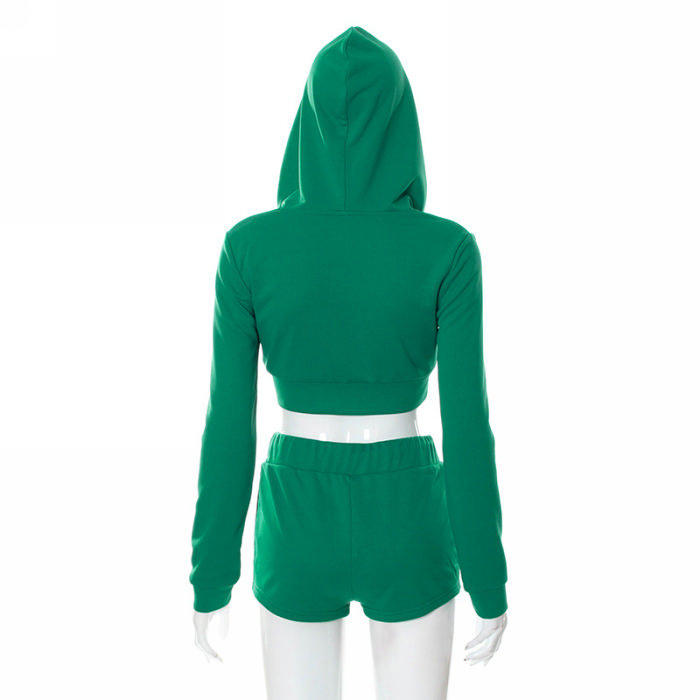 (Real Image)2022 Styles Women Fashion Summer TikTok&Instagram Styles Hoodie Front Zipper Short Two Piece SuitSKU: #CF47314-1