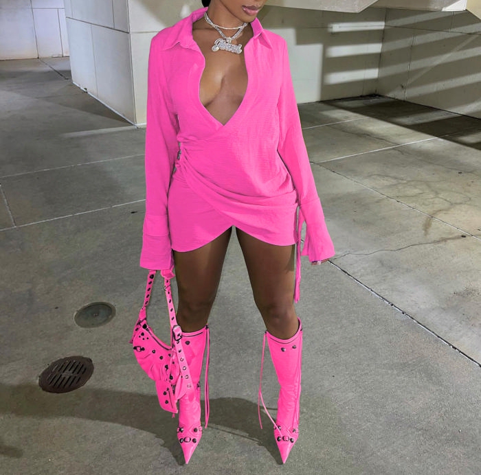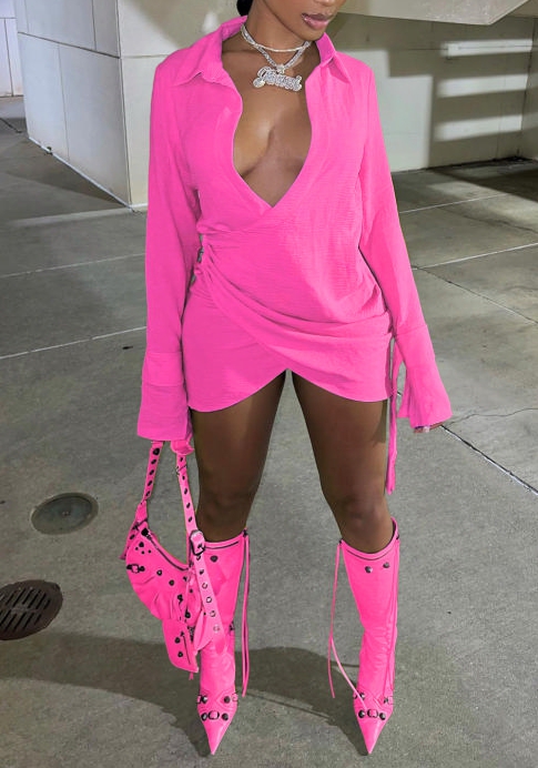 (Real Image)2022 Styles Women Fashion Summer TikTok&Instagram Styles Irregular Long Sleeve Mini DressSKU: #OEM5751-3