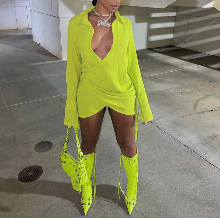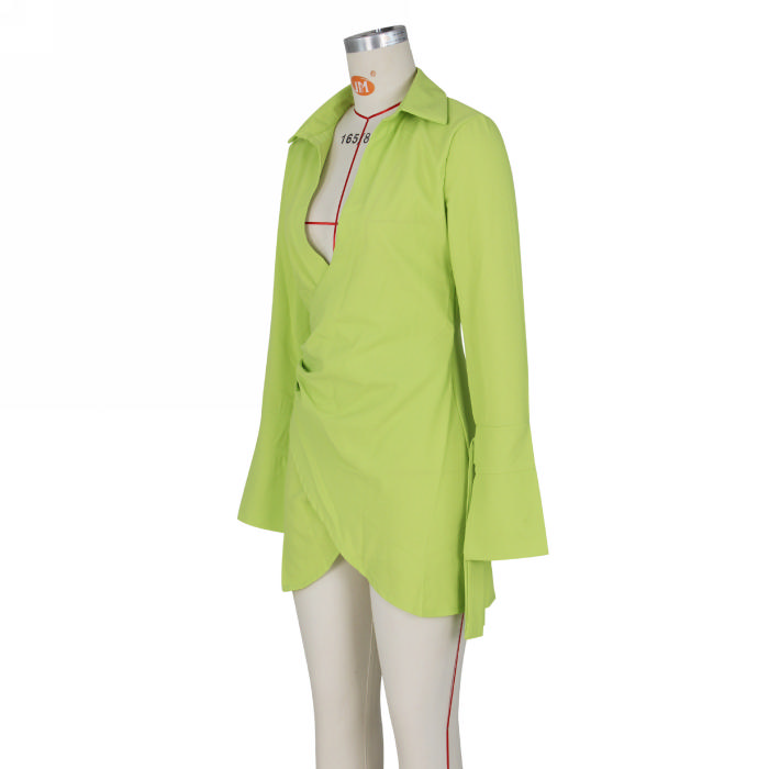 (Real Image)2022 Styles Women Fashion Summer TikTok&Instagram Styles Irregular Long Sleeve Mini DressSKU: #OEM5751-2